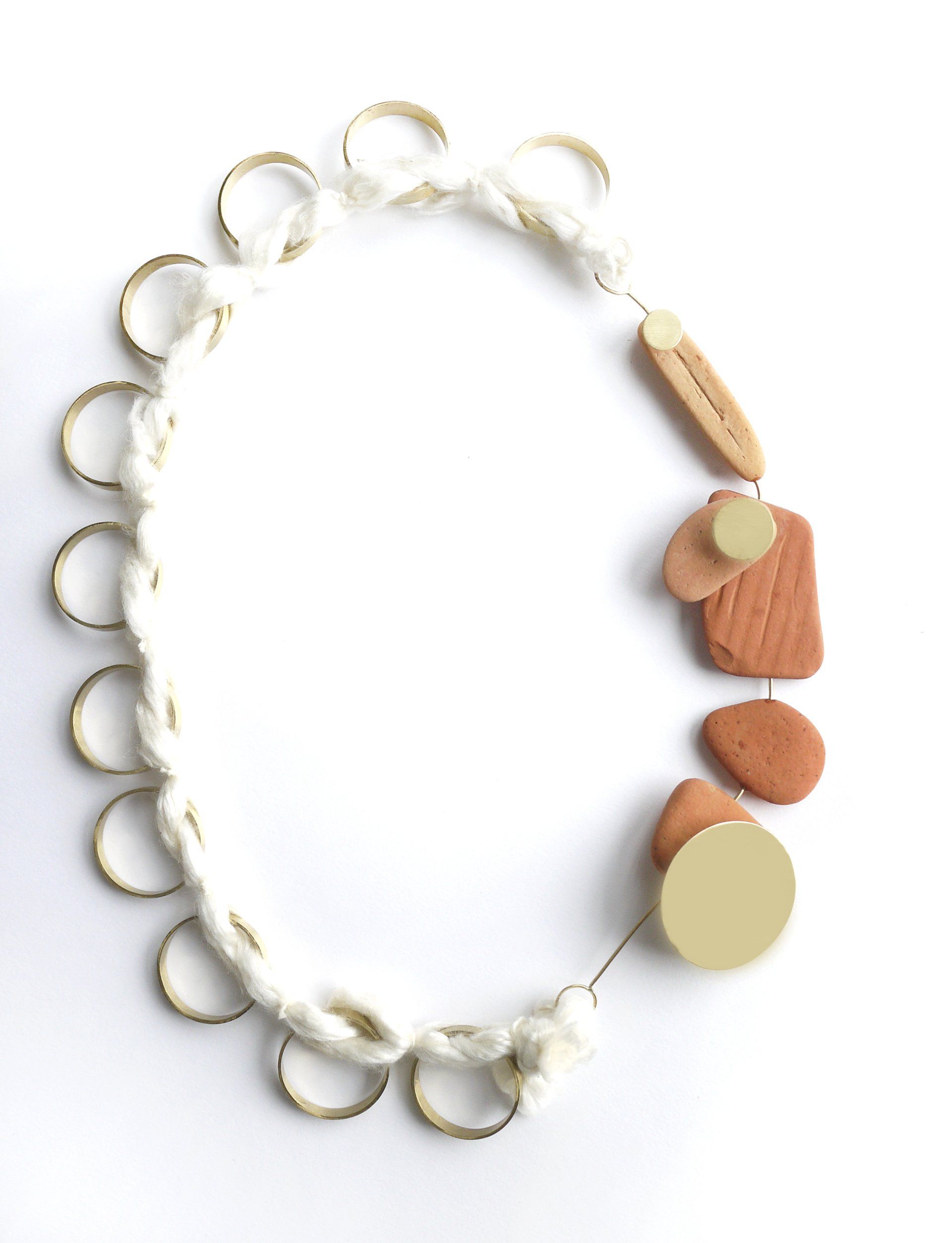 Un encuentro personal que surge en la experimentación de materiales encontrados y alternativos, sin ningún tipo de tratamiento, como en el caso de las piedras de la playa, donde agrega pequeñas figuras de latón dando significado y terminación a las piezas, usted y yo tenemos puntos. de unión "la unión de diferentes materiales por puntos, representa la unión de diferentes personas y la simbiosis hasta que creamos ese vínculo perfecto que nos hace uno. Incluso en medio de la experimentación ella trabaja con porcelana, latón, lana, incluso líquenes vivos, dando sentido a sus creaciones, como en el caso "naturalmente imperfecta"